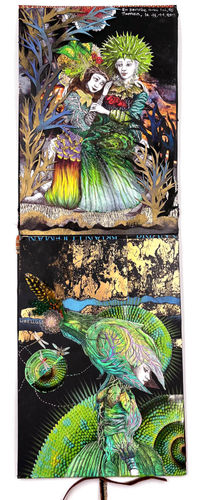 - Ne pas déterminer de thème trop particulier, mais laisser venir librement les images, afin de capturer et traduire le climat émotionnel du moment, à la manière dont on écrit une page dans un journal intime .
