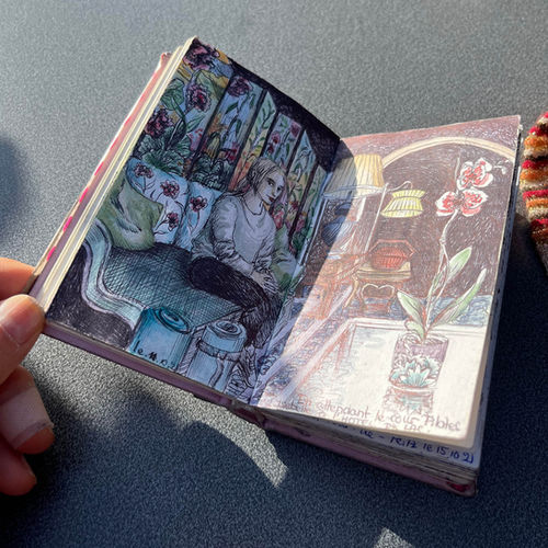 Ces cahiers de dessins sont comme des herbiers dans lesquels, plutôt que d’y déposer des fleurs, je collecte des moments.